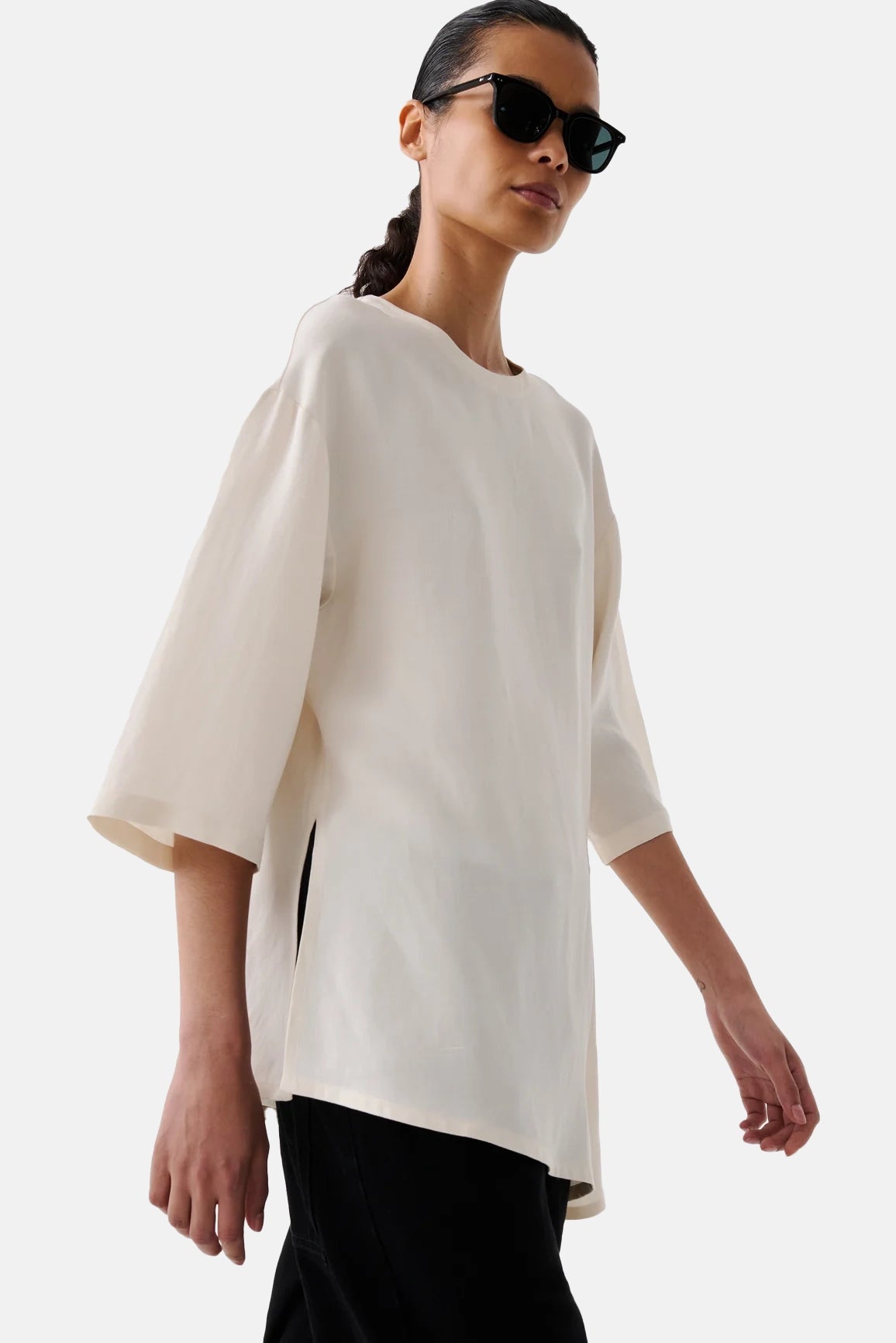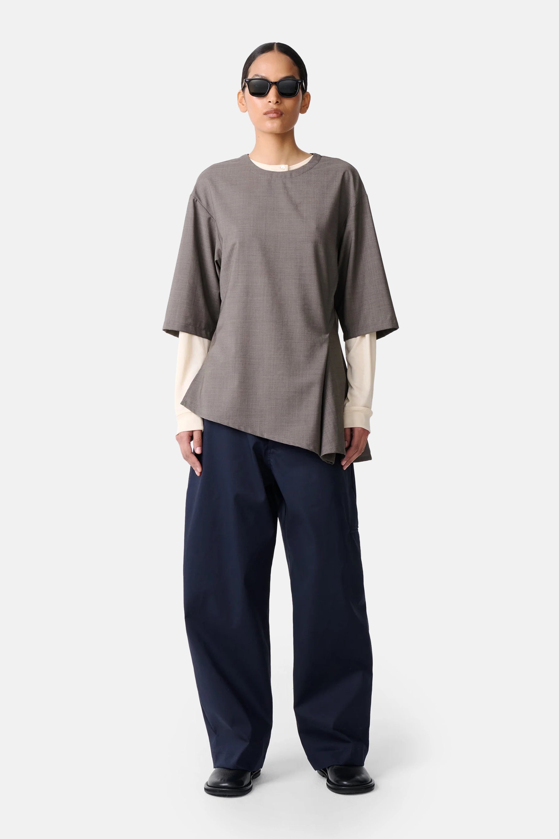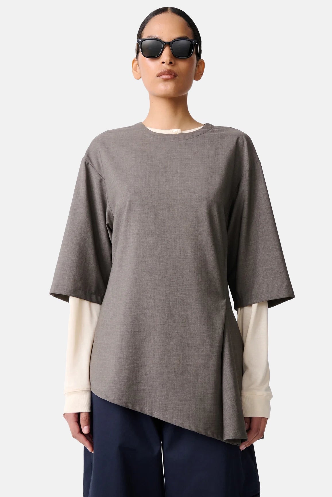 Studio Nicholson Melange Vichy Asymmetric Hem Top