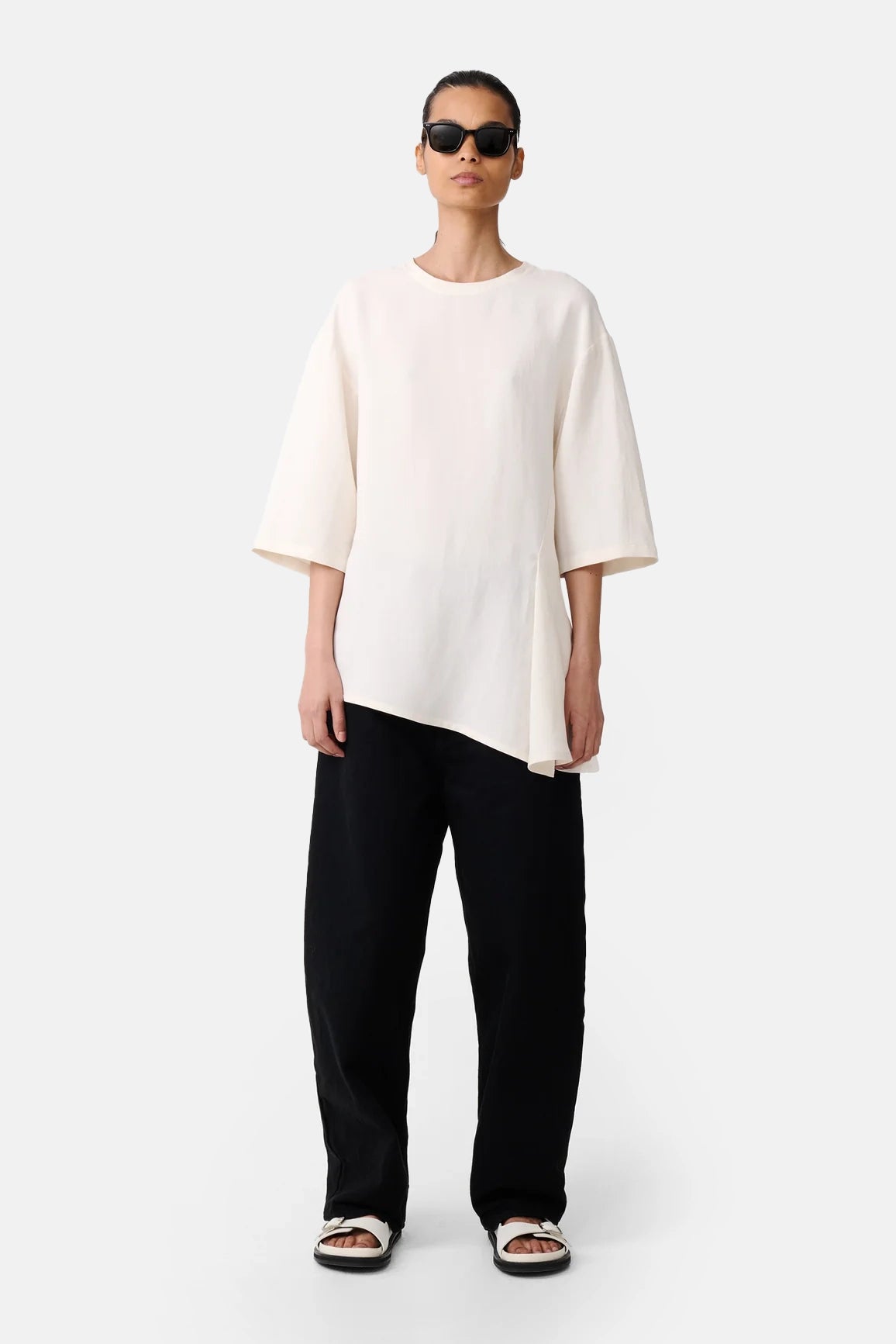 Studio Nicholson Chalk Vichy Asymmetric Hem Top
