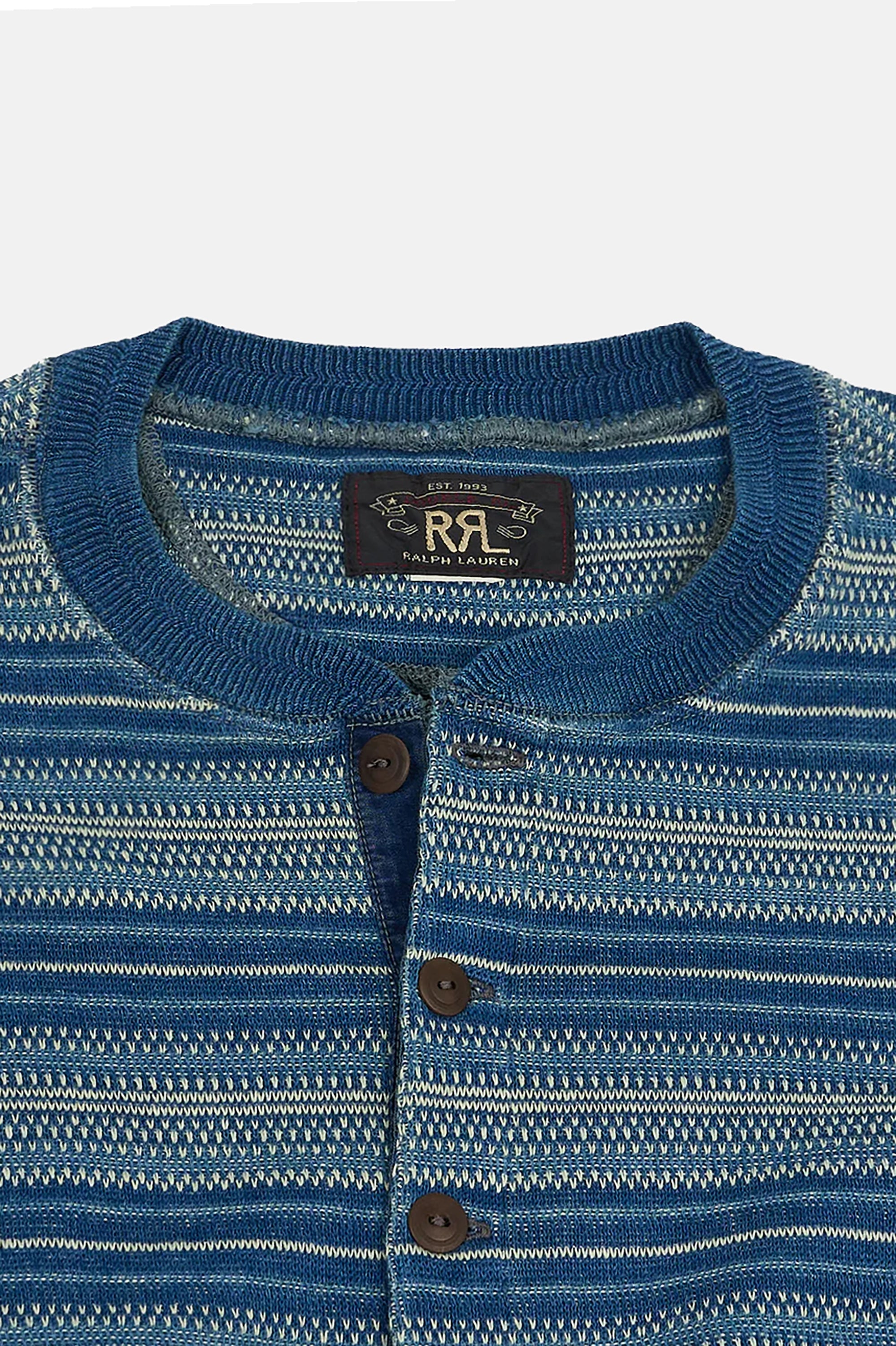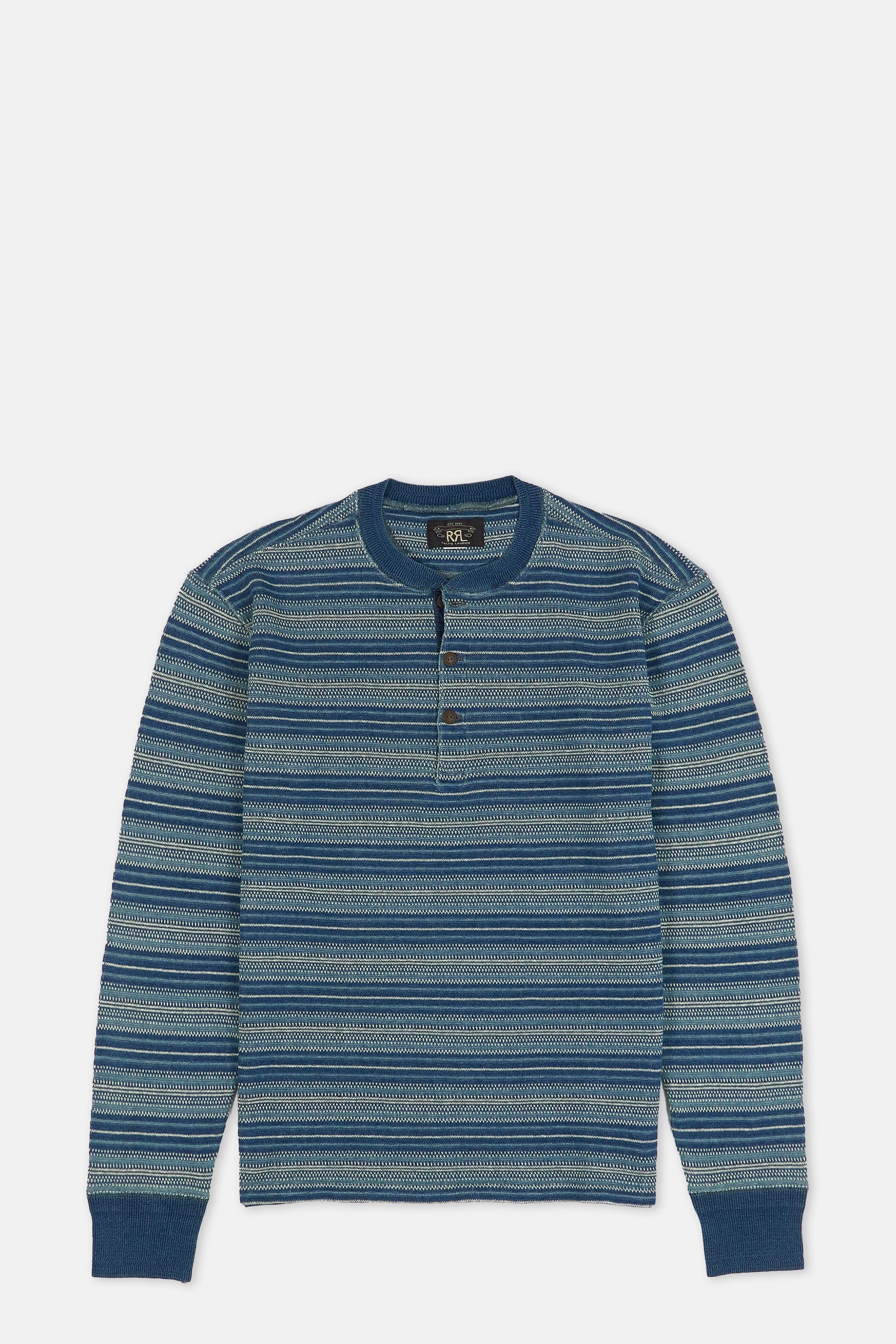 Double RL Indigo Striped Jacquard Henley Shirt