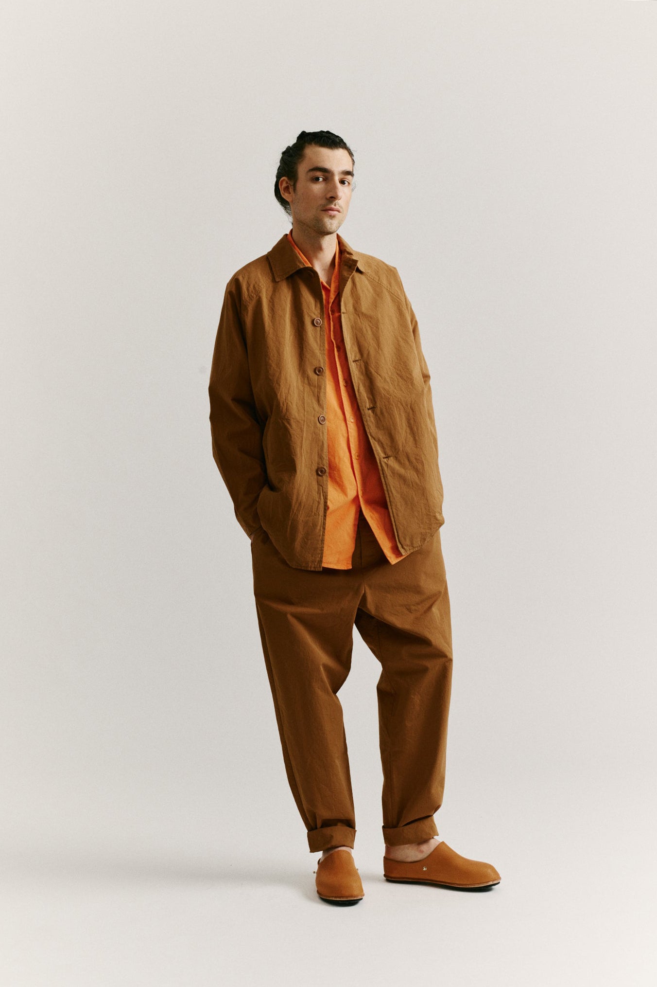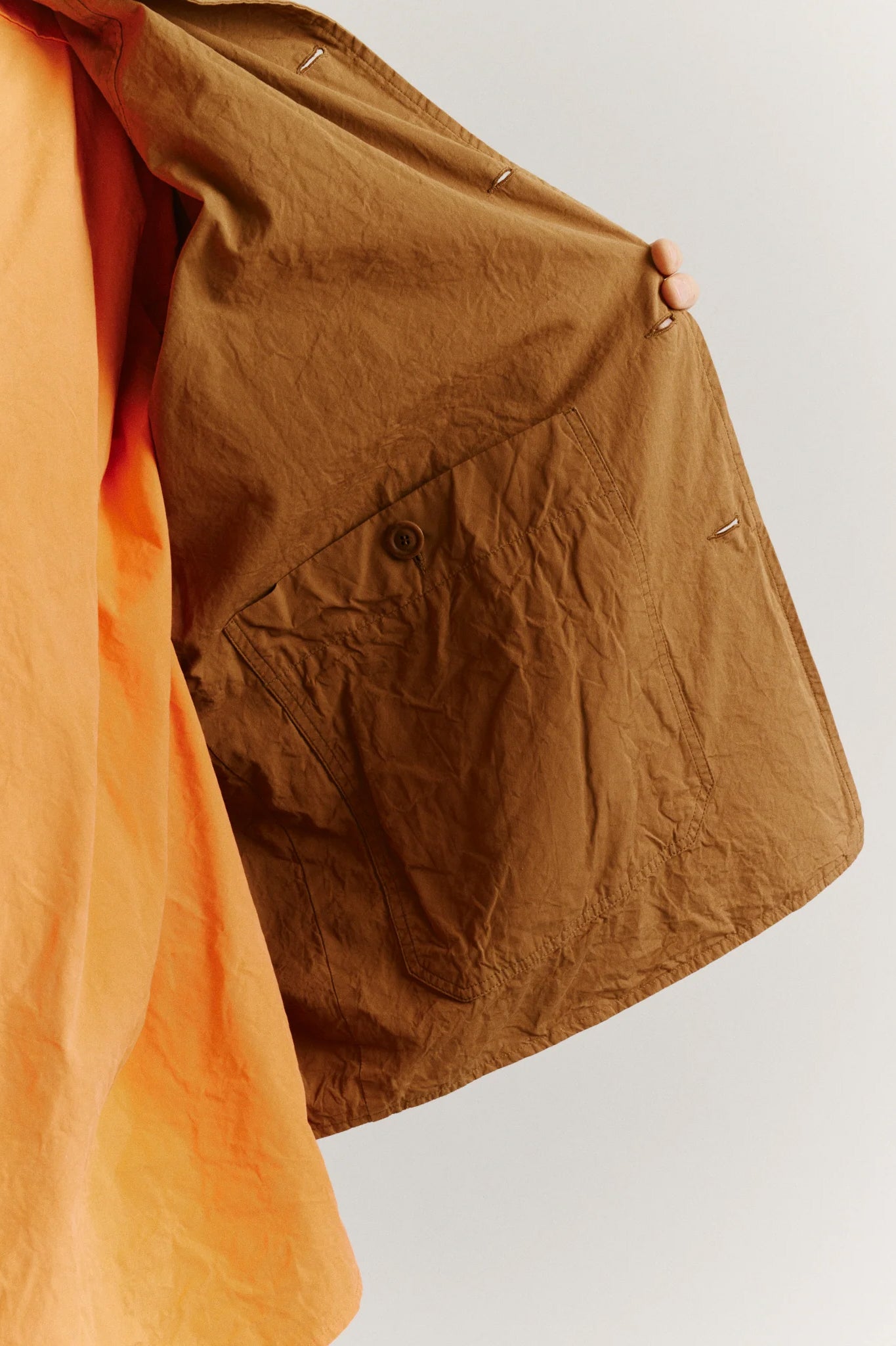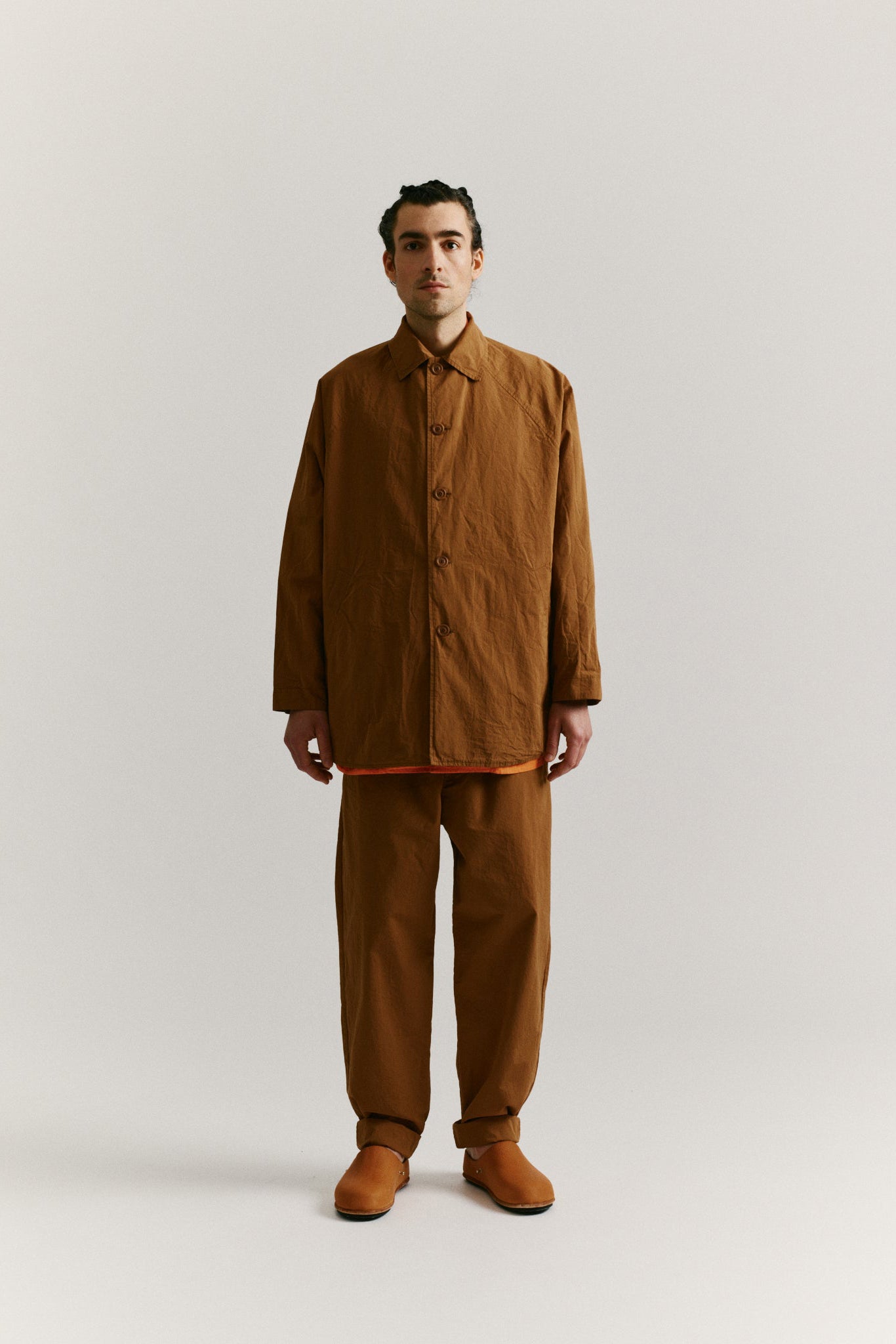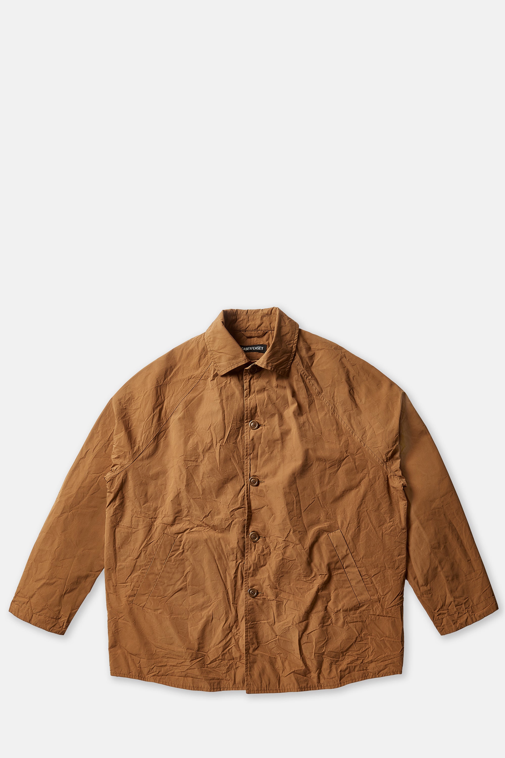 A classic Casey/Casey jacket made of paper cotton, with raglan sleeves and a straight hem. This garment embodies the brand's recognizable combination of relaxed and sophisticated elements. The slash pockets enhance its practicality while the two interior pockets with button closures make it even more functional. Completed with Corozo buttons, this jacket exudes timeless elegance and attention to detail.